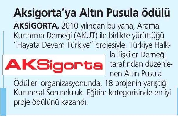 AkSigorta'ya Altın Pusula Ödülü / Akşam