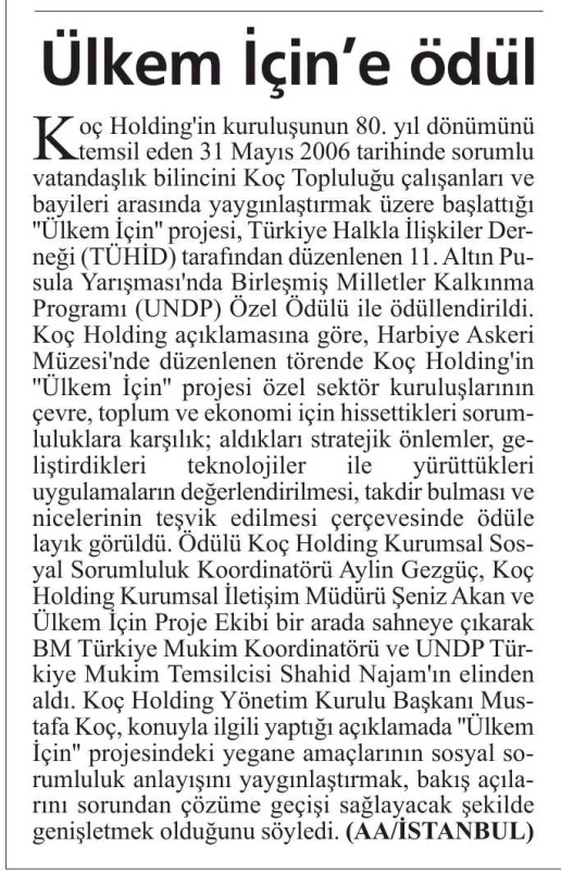 Ülkem İçin'e Ödül / Ege de Bugün