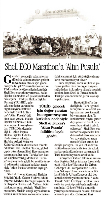 Shell ECO Marathon'a "Altın Pusula" / Hürses