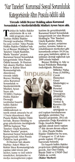'Nar Taneleri' Kurumsal Sosyal Sorumluluk Kategorisinde Altın Pusula Aldı / Hürses