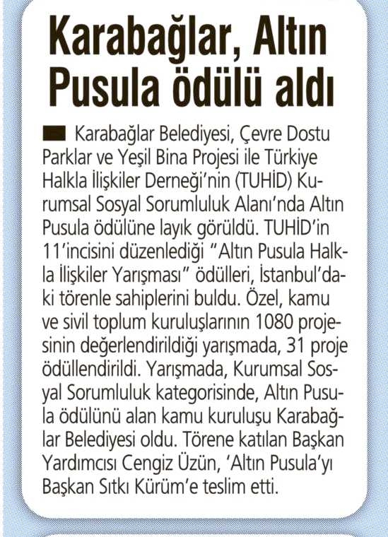 Karabağlar, Altın Pusula Ödülü Aldı / Yeni Asır