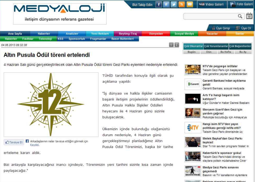 Altın Pusula Ödül Töreni Ertelendi / Medyaloji