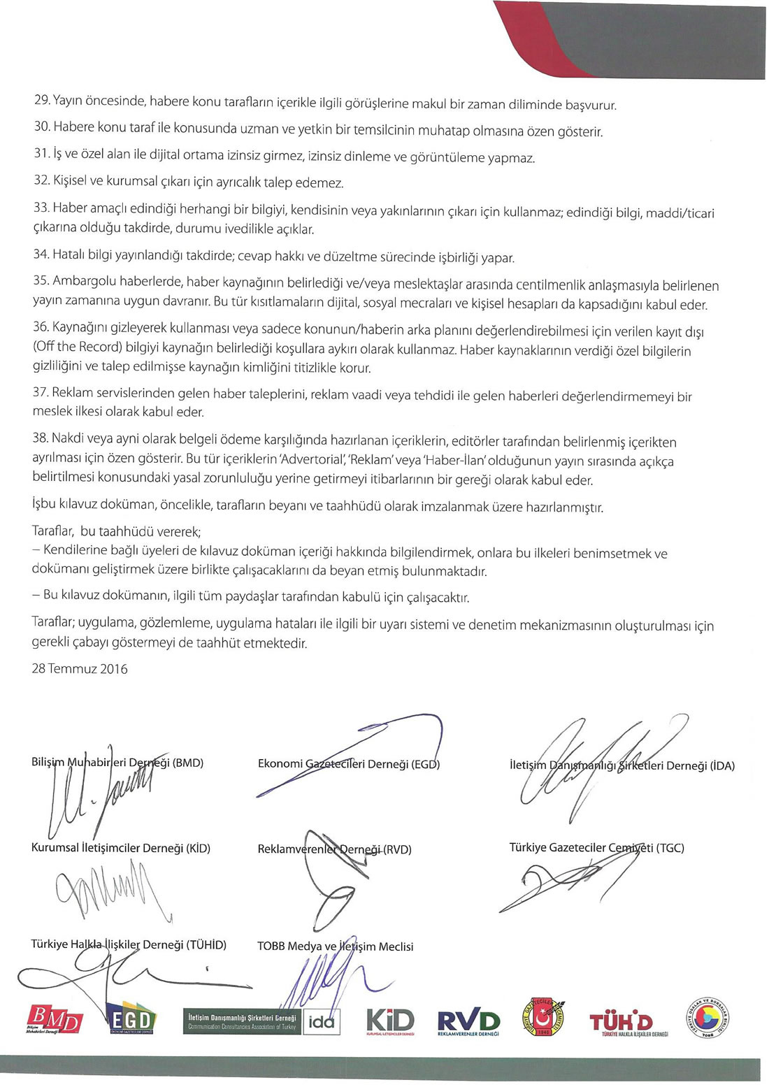 TÜHİD Meslek İlkeleri